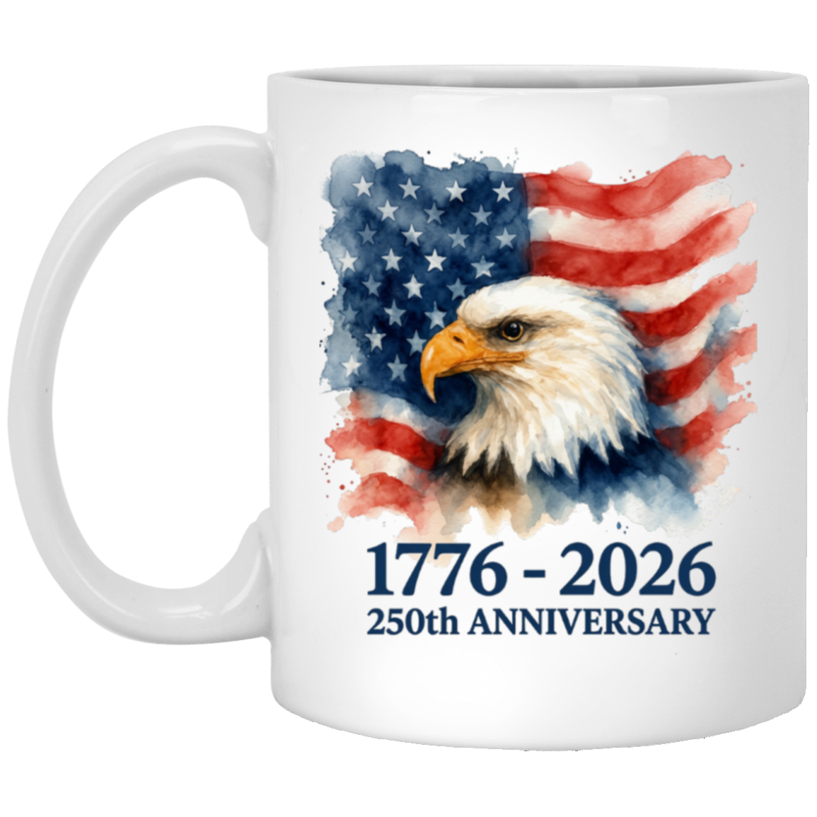 1771-2026 250th Anniversary Water Color Flag And Eagle Desing - 11oz White Ceramic Mug quantity