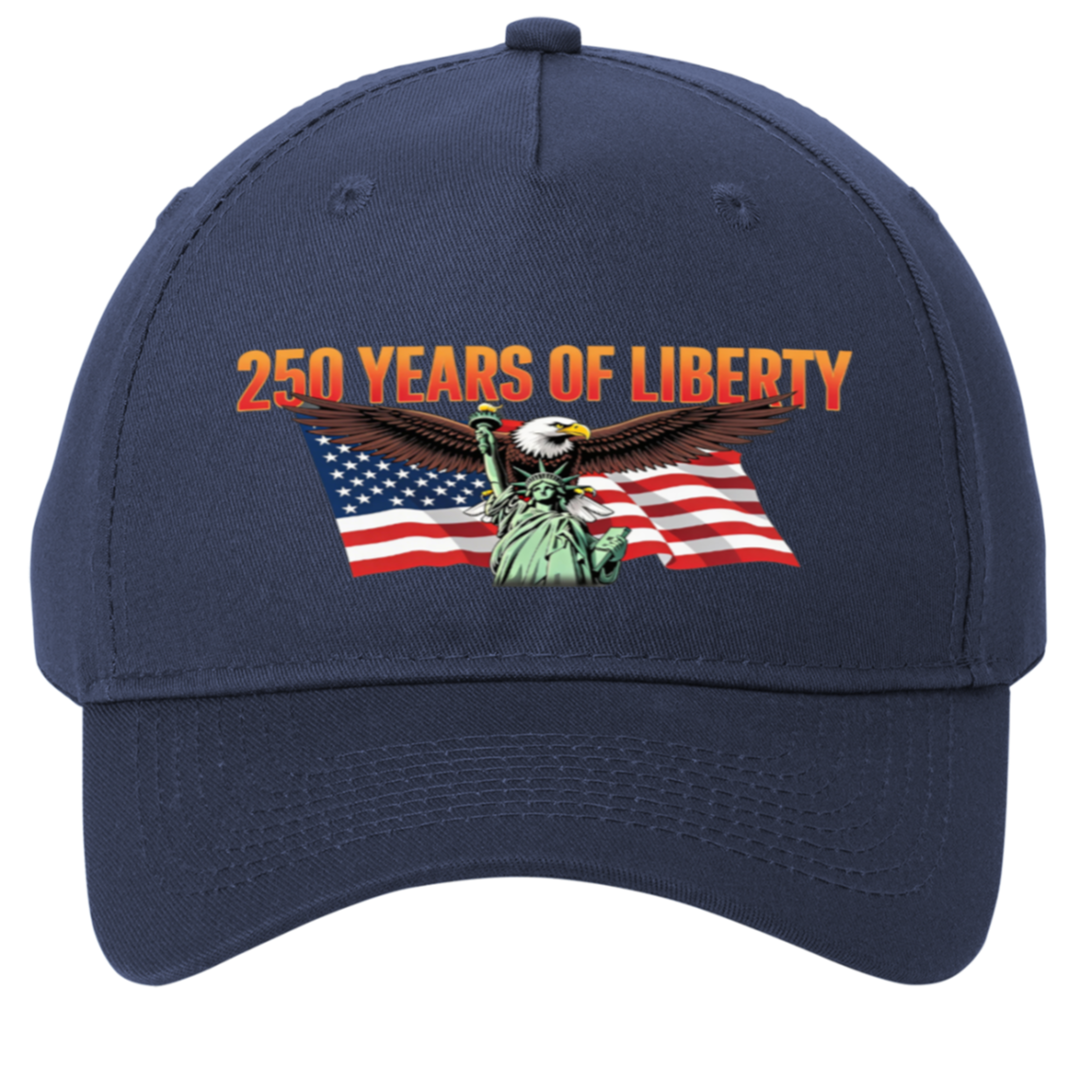 250 Years Of Liberty : Eagle Soaring Over Liberty Design – Port & Co 100% Cotton Twill Cap (4 Colors)