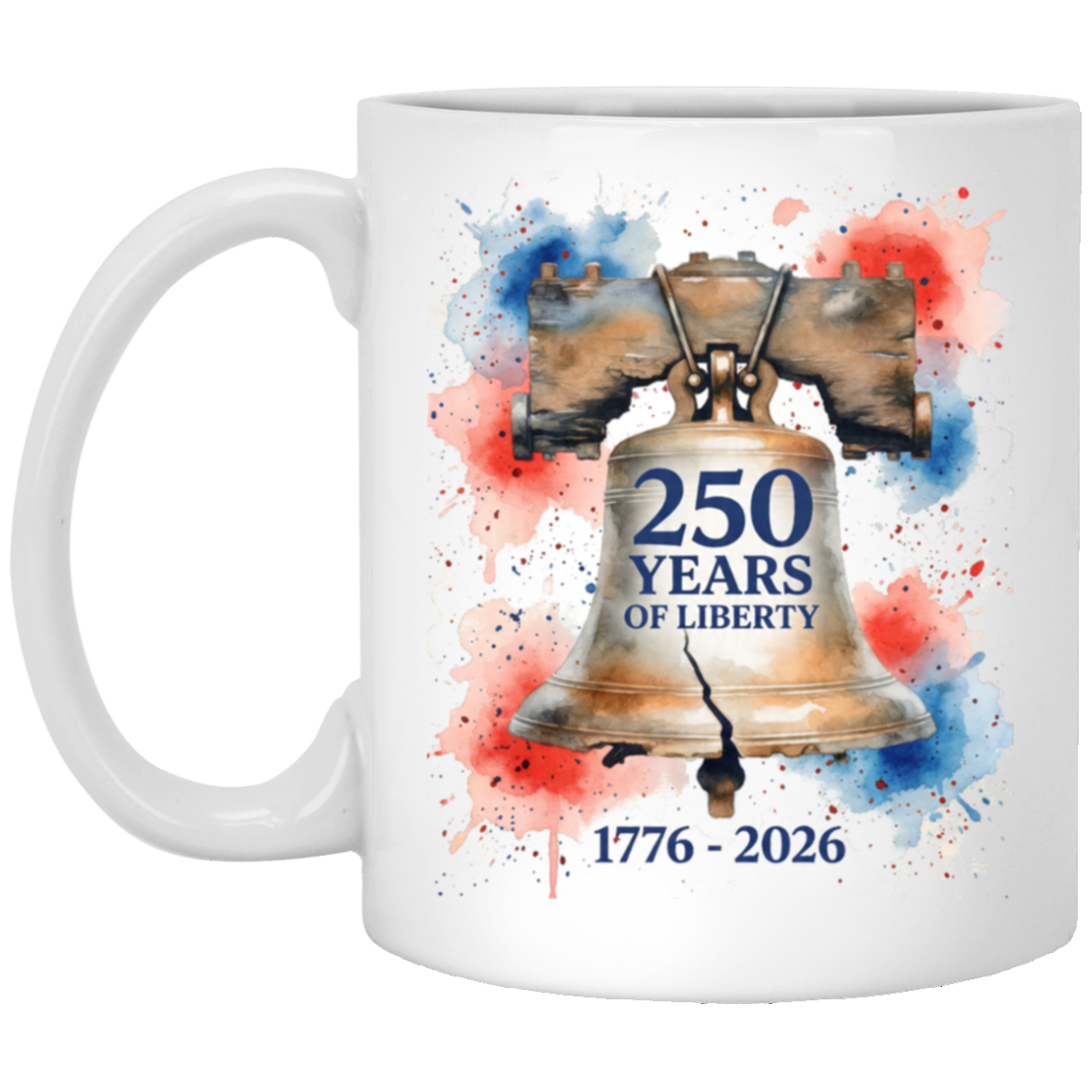 250 Years Of liberty : Watercolor Liberty Bell Design – 11oz White Ceramic Mug