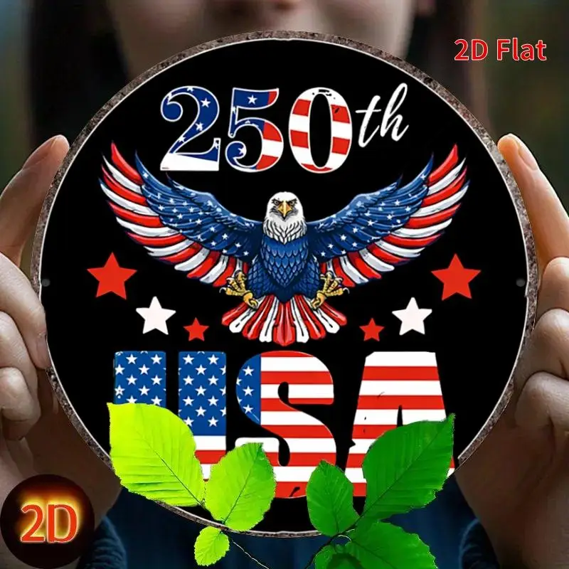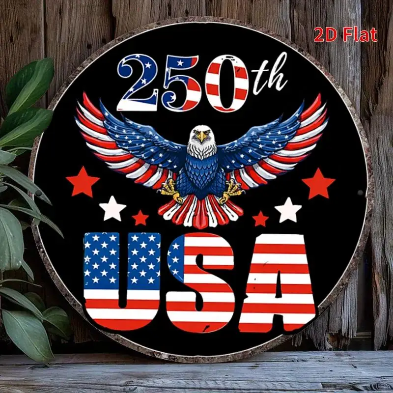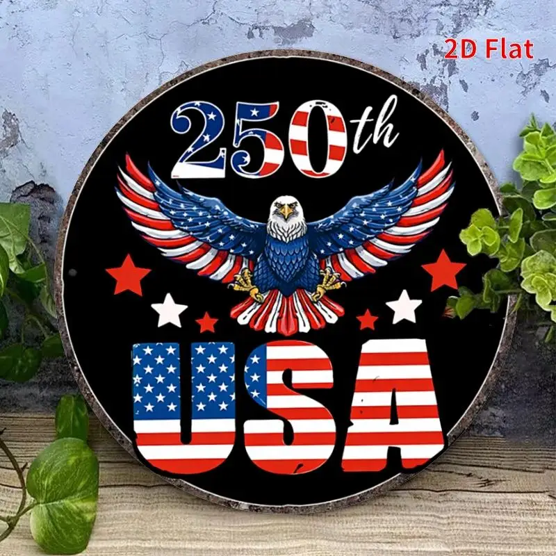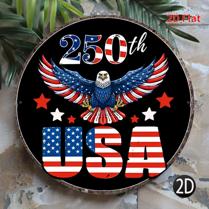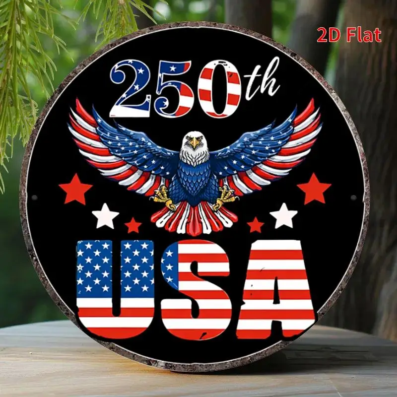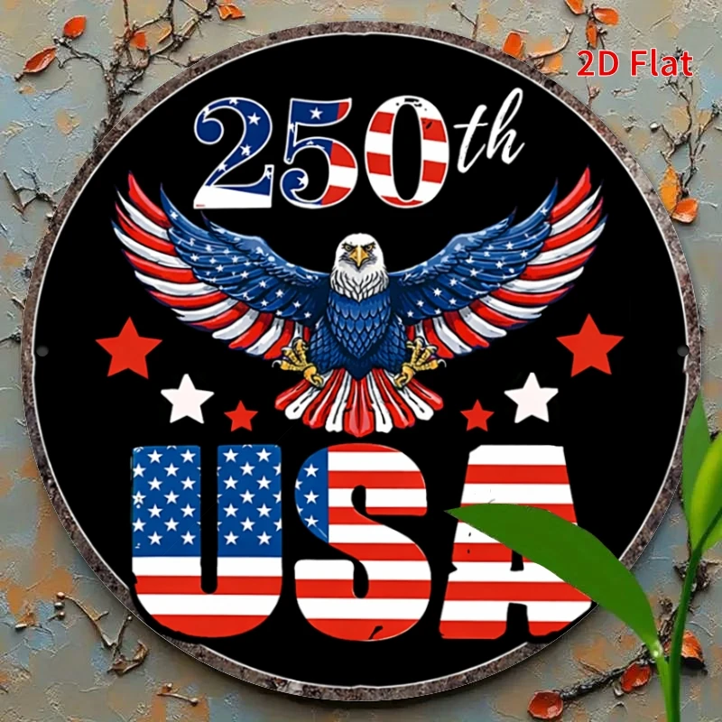 250th Anniversary Bald Eagle USA Round Metal Wall Art – 8in Round
