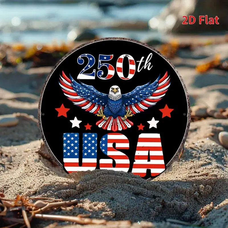 USA 250 Years 1776-2026 Round Metalic Sign – 8in Round