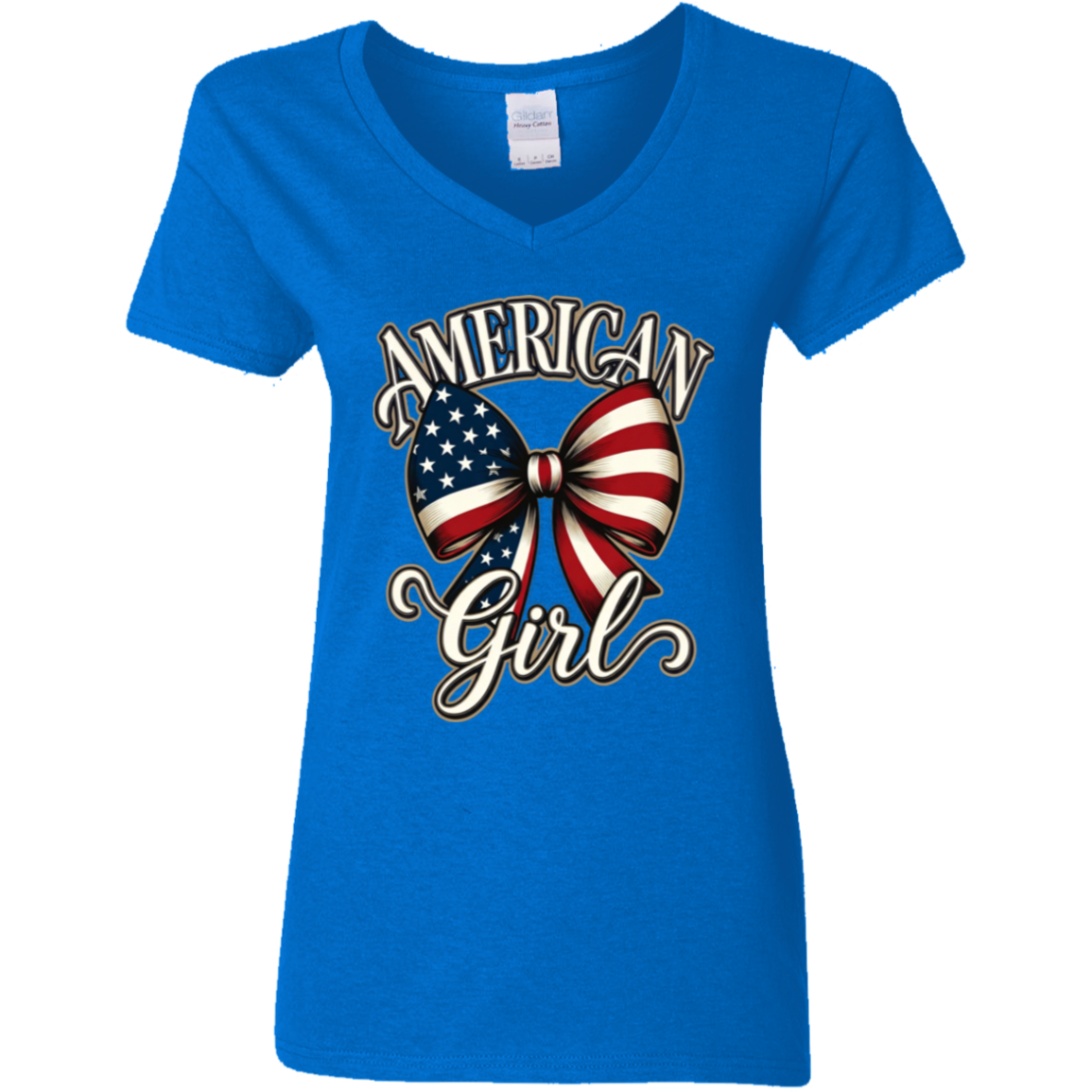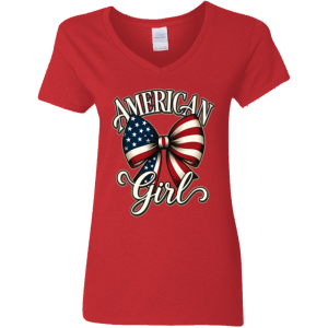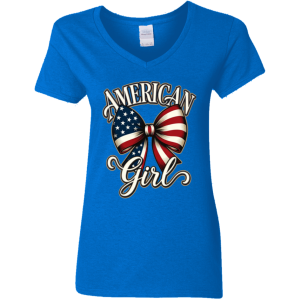 American Girl Bowtie Design Gildan Ladies’ Cotton V-Neck