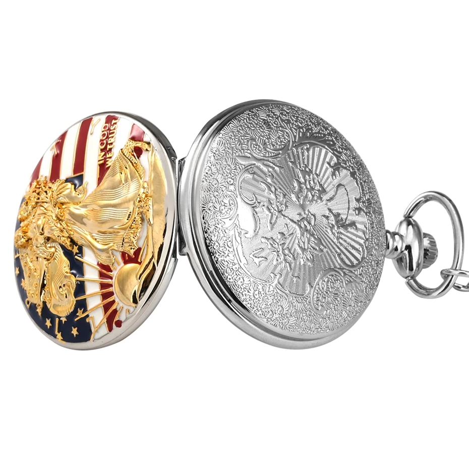 Walking Liberty American Flag Design Quartz Pocket/Pendant Watch quantity